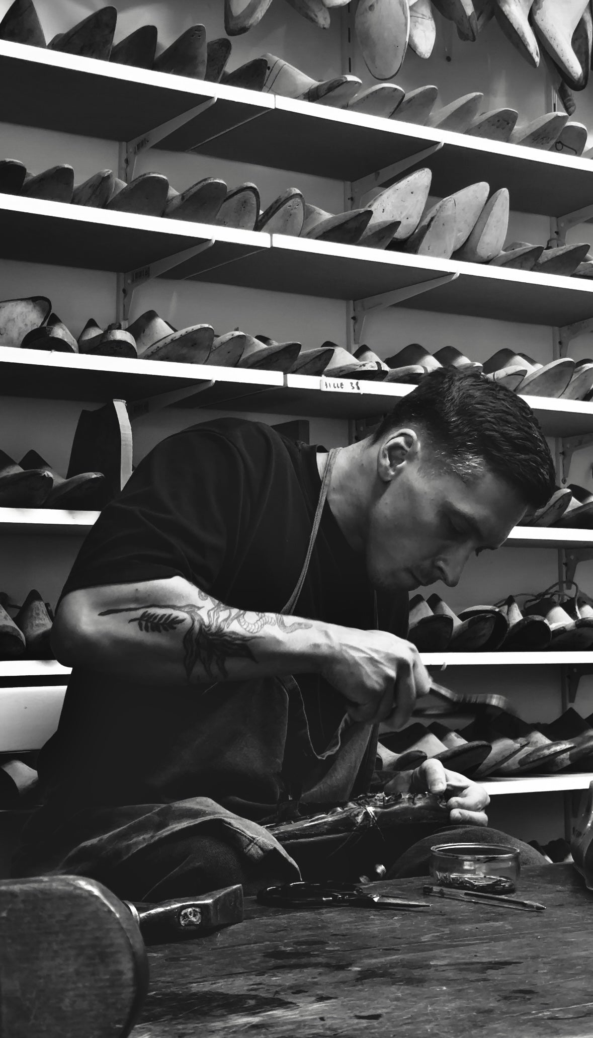 I studied design, construction, and art, and quickly discovered a passion for shoemaking. After mastering pattern-making in Kyiv and working with Ukrainian designers at UKRAINE FASHION WEEK (2015–2022), I moved to Paris in 2022. There, at Maurice Arnoult’s atelier, I refined traditional leather sole techniques, and since 2024 I have been working at LE SNEAKERS ATELIER, focusing on luxury shoemaking.